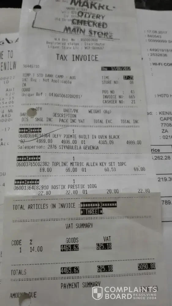 Defy Appliances / Defy South Africa Complaints Page 14 of 19