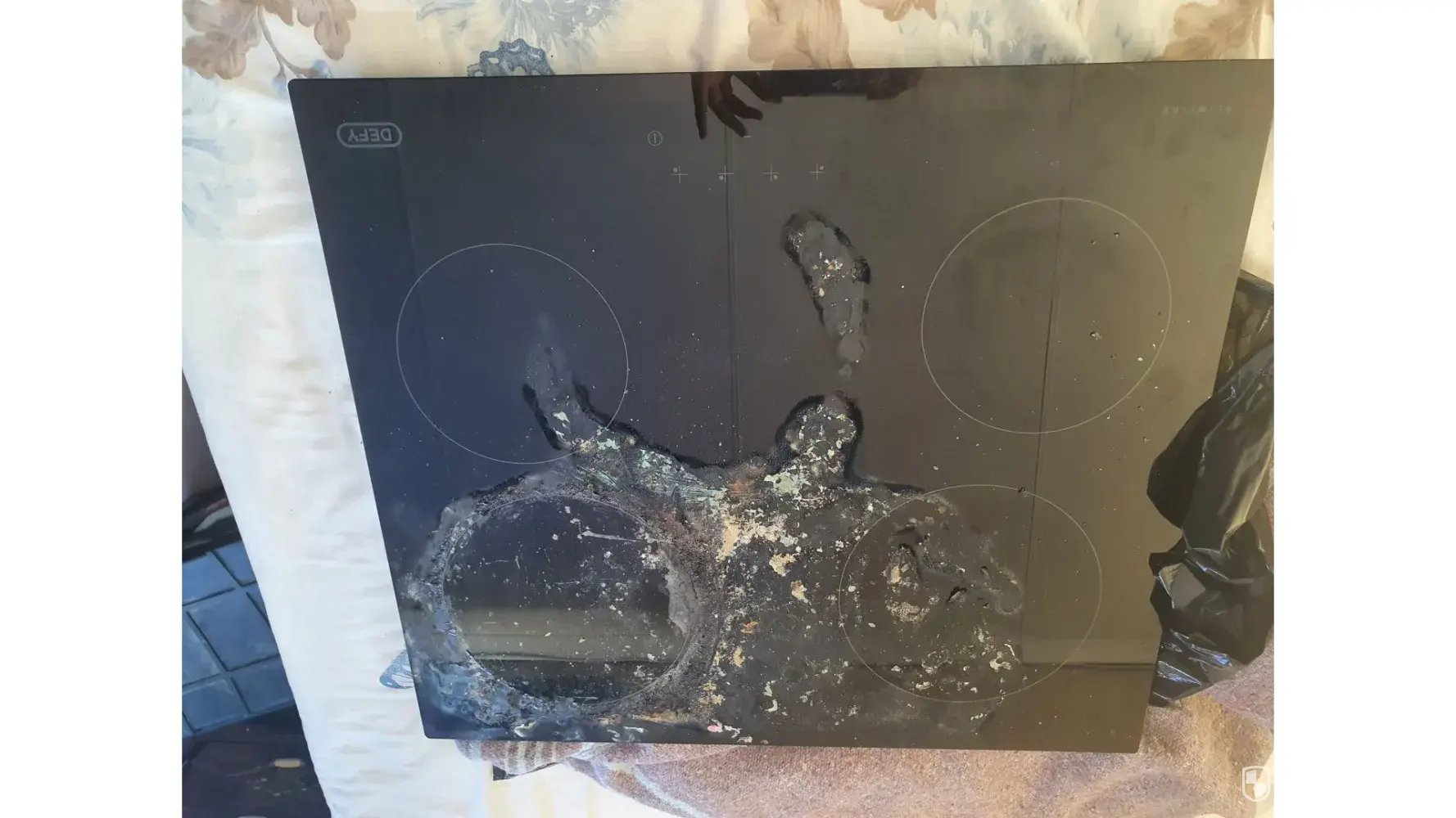 PC board was faulty and cause plate to switch on and burn cover and course damage to 3 plates. Defy Bloemfontein in, Andre said that has been the customer fault over cooking and abuse, which is not true. It was inspected by Rudy the technician and said that the whole plate must be replaced.