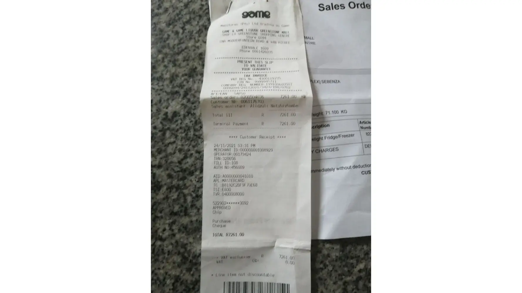 I bought a brand new Defy Fridge with water despenser from Game in Greenstone Mall on the 24th of November 2021.