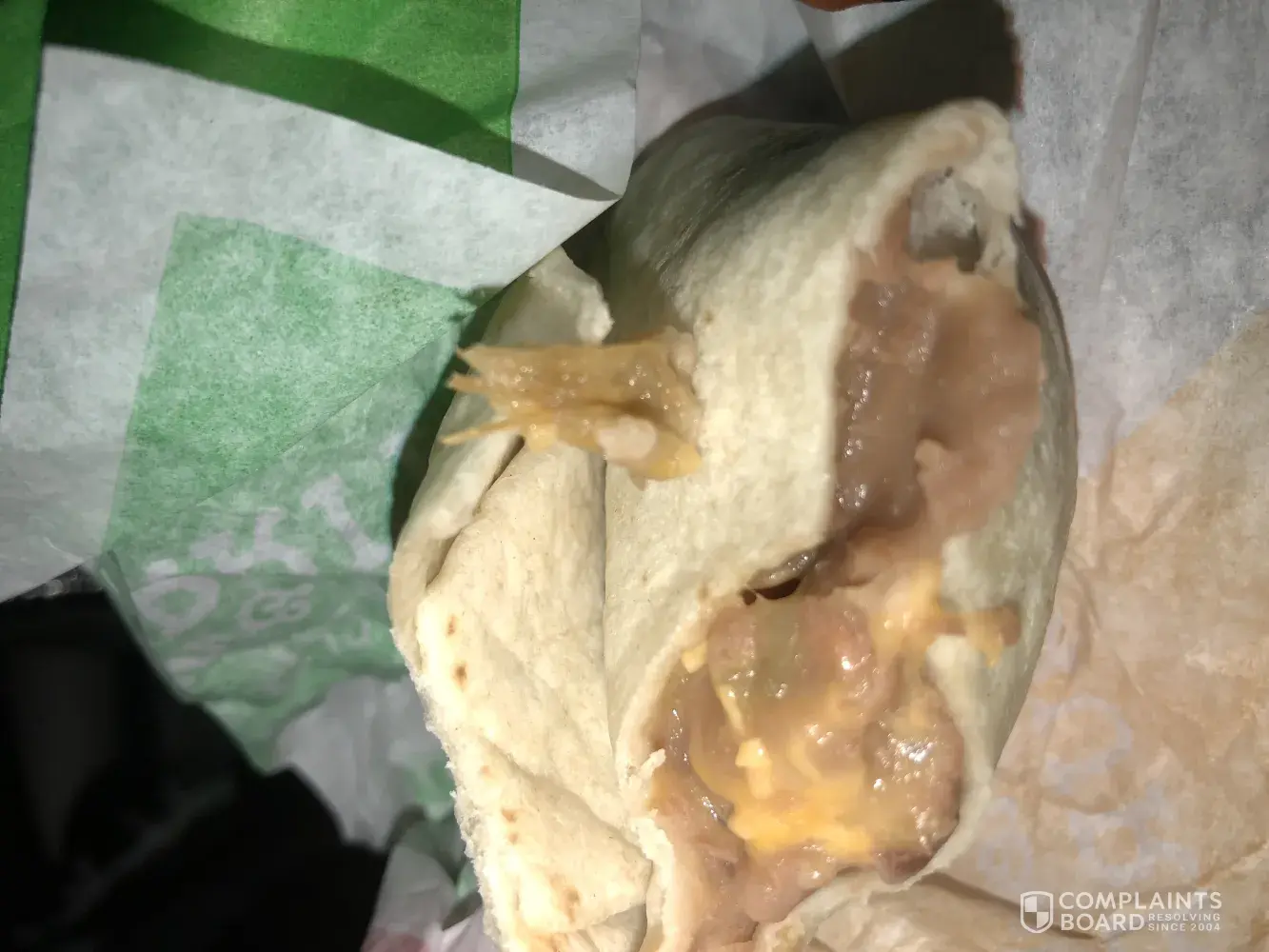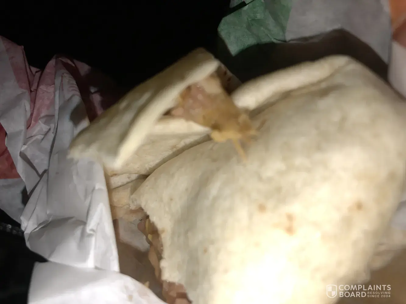 Fish in burrito (fin) . Very hard . Not anything I've ever had here . Gross ! I thought maybe the tortilla got a little hard which it shouldn't be anyways . Wishing I never took another bite now I'm stuck with a nasty taste in my mouth . I love del taco ! I come here before Taco Bell any day especially after a late night off work. Now I will never come back due to this and if I knew what it was I'd sue!