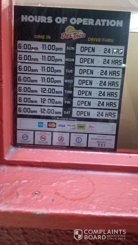 This is one of the many dissatisfaction experience I've had at this Del Taco in Dana Point California. It's only the night crew for some reason the day crew is all right but I go to this deltaco regularly and the night crew is constantly horrible and treats a customer's awful . This one incident that happened tonight is I came to the front door at 11: 55 p. M. Which on Saturdays it is posted on their hours of operation that they are open till midnight the doors were locked when I tried to enter into the building I tugged on the doors and looked at the employees and the manager told me no I told him that it was not midnight yet that it was 11: 55 and I had 5 minutes he proceeded to give me a dirty look and rudely shake his head no at me. Completely unprofessional behavior from a shift manager something really need change and retrain them on customer service etiquette or they will be losing lots of money a lot of people complain about the night crew at this Del Taco completely unprofessional behavior from the night crew employee. I will be calling the main corporate office as well to let them know the horrible behavior of this Del Taco night crew.
