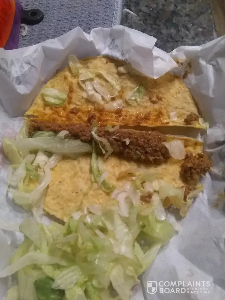 This is the 2nd time I've been disappointed with a meal from Del Taco. The other time, we ordered Del Beef Hamburgers and there was fried residue from the grill on the meat itself and it was crunchy. I returned them to the store and the manager (a young guy) was indignant that I was returning them.