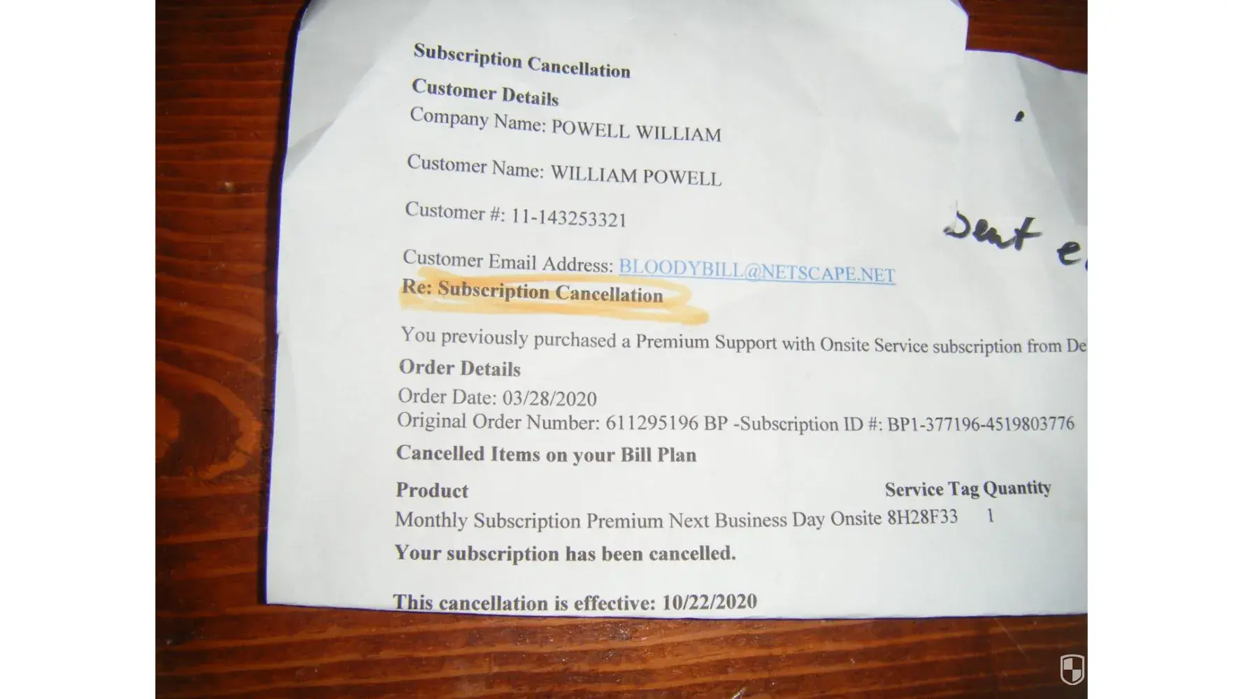 Subscription Cancellation OCTOBER 22-2020 William Powell Post Falls Idaho