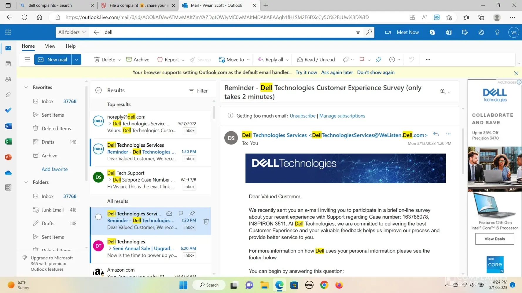 to: One Dell Care Dec 23, 2022, Case # 158656XXX