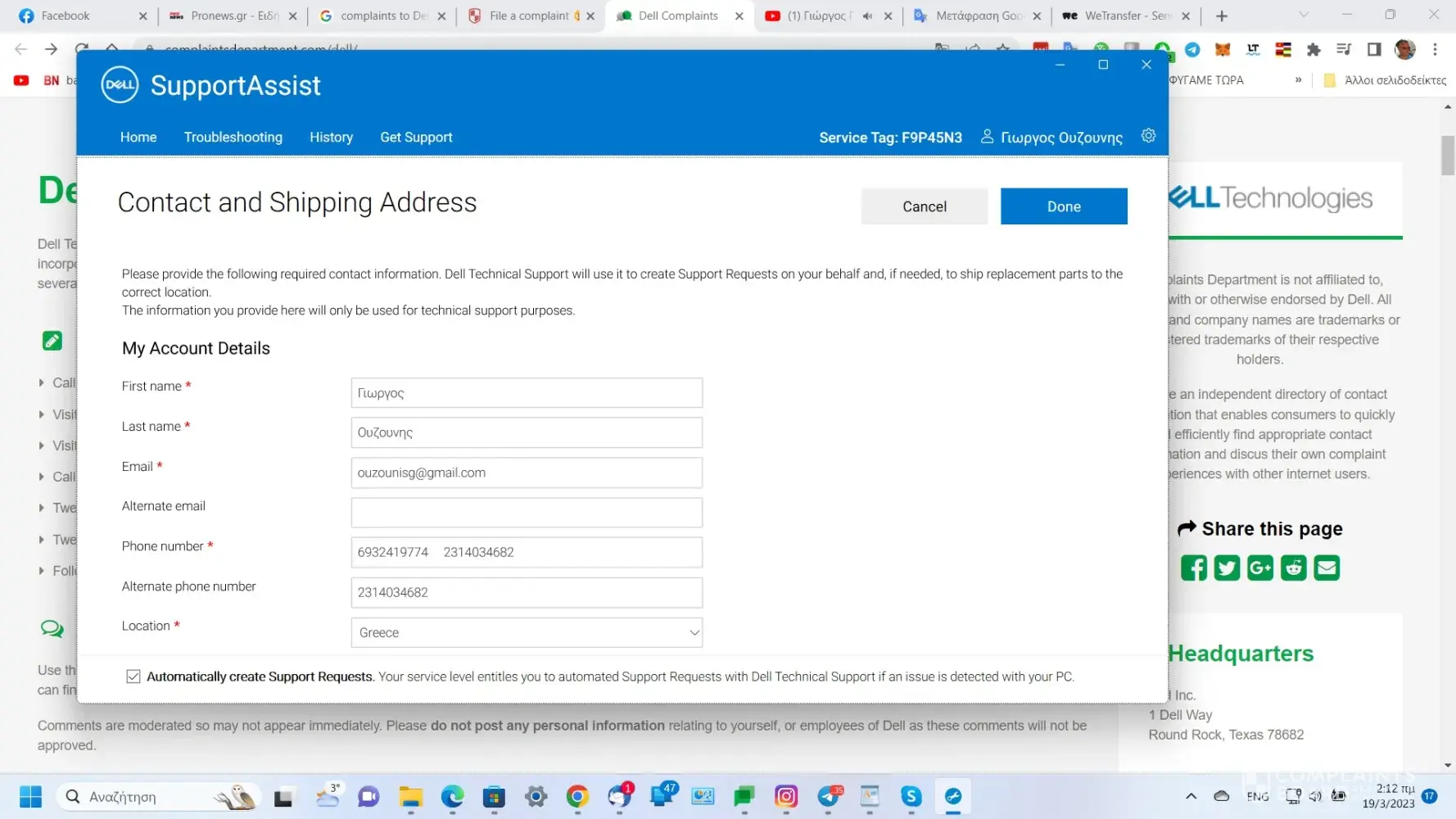 I would like your help regarding a problem I am having with Dell Greece.