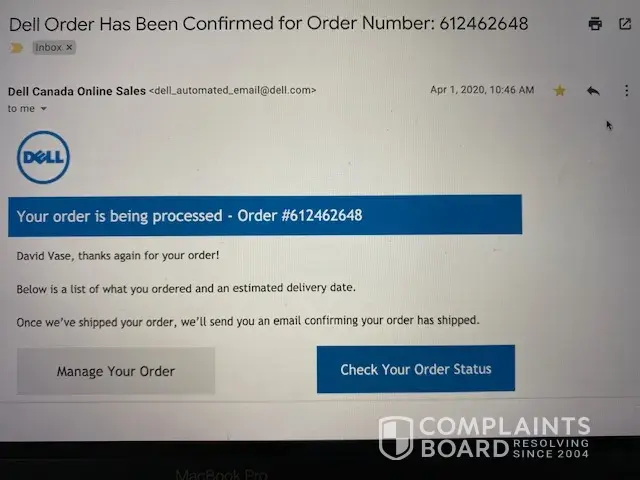 Account created for a product Dell now says was out of stock 2wks ago