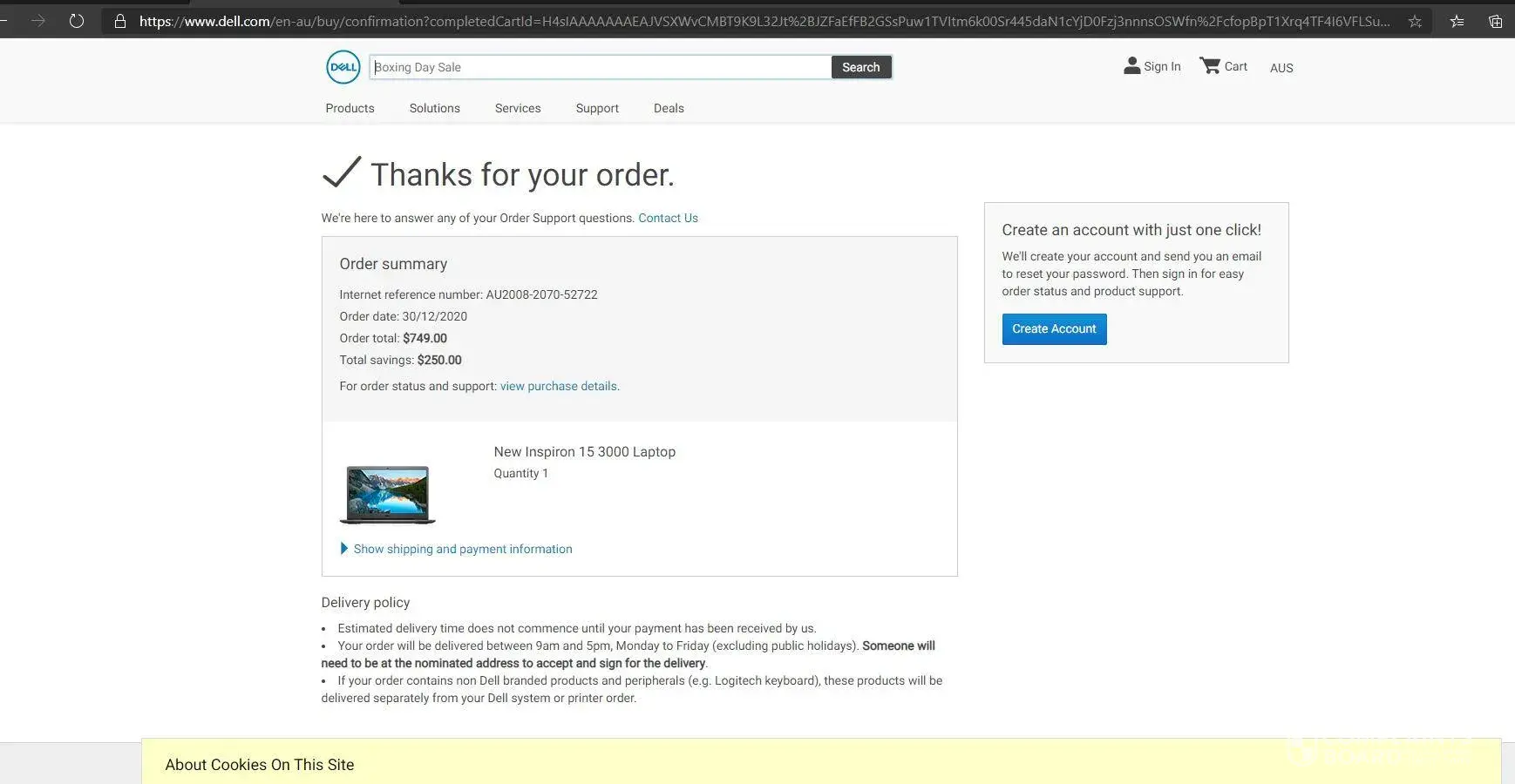 The order for the Vostro 7590 was cancelled without any notification, after chasing this up, I reordered a Vostro 3490 (order [protected].10.2020