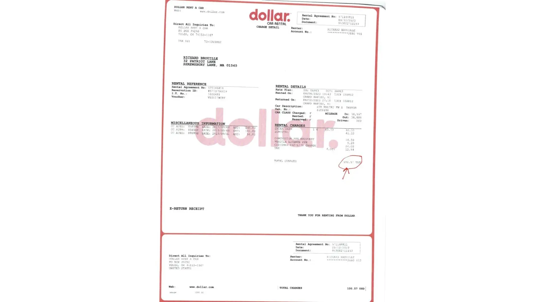 Desired outcome: please refund $777.27 thank you richard and pamela brouillet