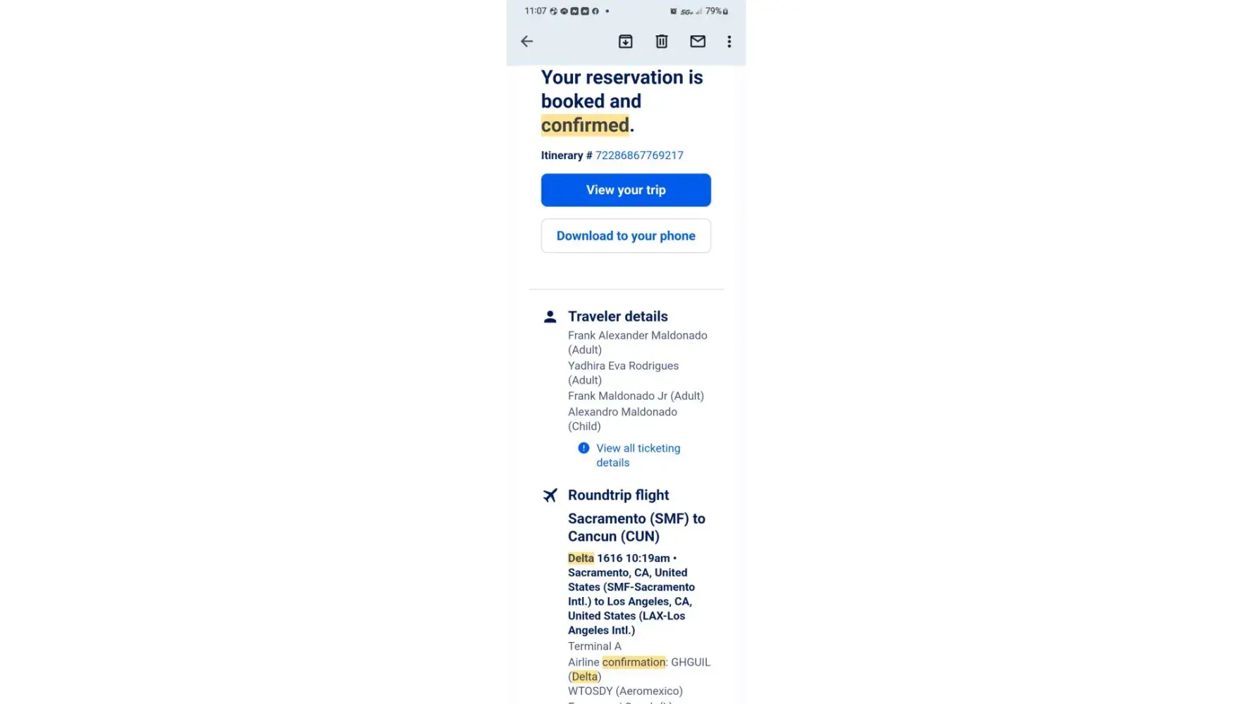 Delta also did another error by canceling our return flights from Cancun! I don't understand why that was even done. We spent over 1 hour dealing with this issue in Cancun. Luckily, AeroMexico was able to rebook our same returning flights. My son's luggage was also left in Cancun, by the airline, due to all this rebooking commotion. He was without his retainer for a few days. This was the WORST flight experience ever!