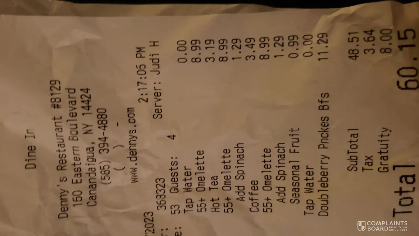 Read full complaintDenny's unit # 7096