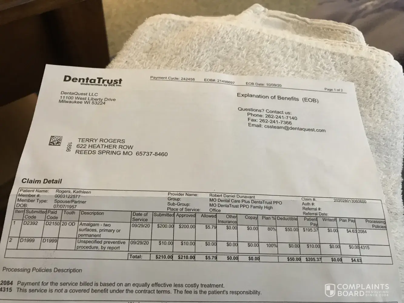 And we purchased their best plan, which should have covered 80% of this procedure. And on her visit before this, they paid nothing on an emergency dental visit for a cracked tooth. They claimed that was a routine maintenance procedure, and because we already had a cleaning done, they could not pay any more on routine maintenance for 6 months. That one cost us $68.00!