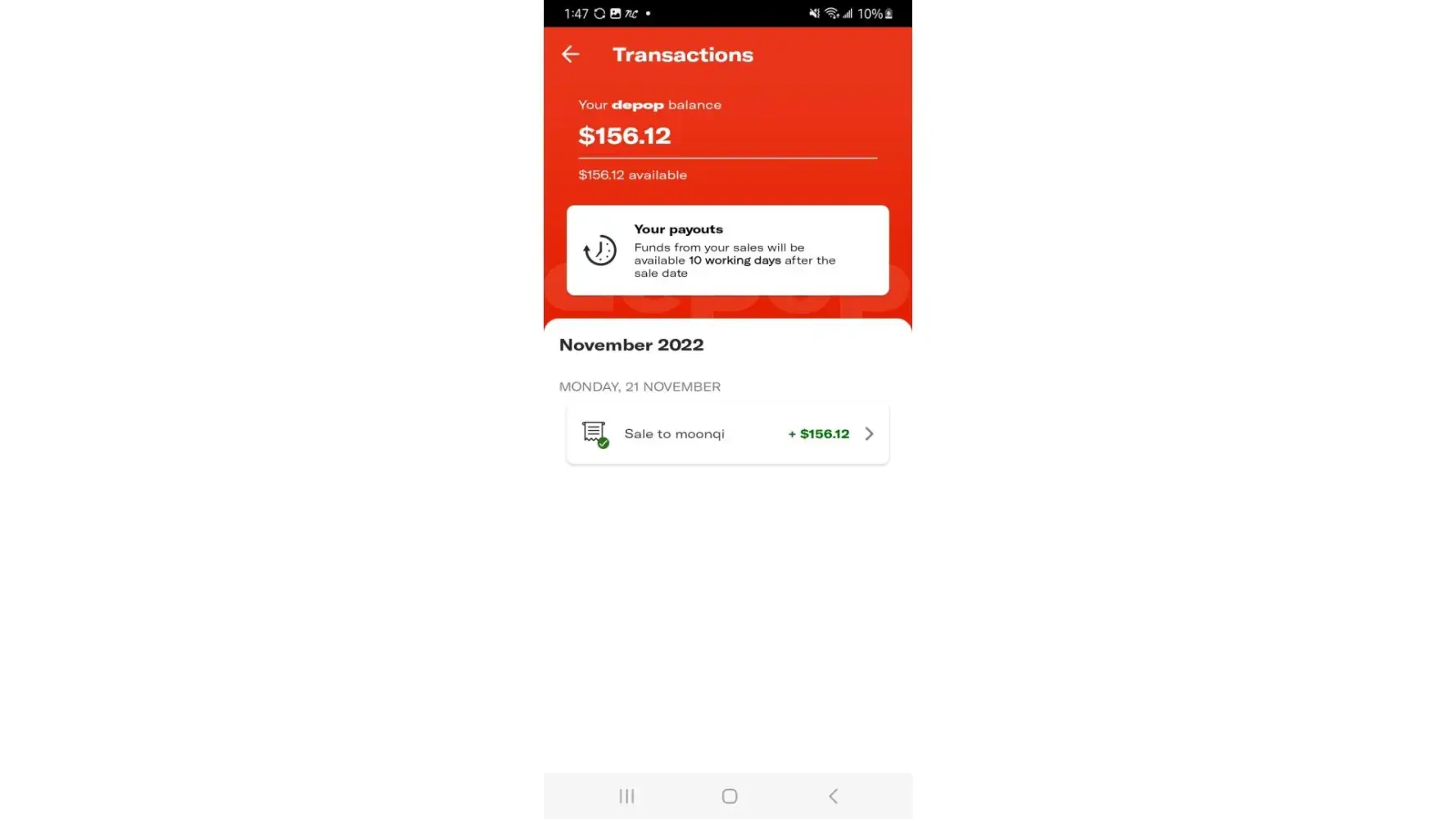 I sold a top on April 2nd, & made a trade on April 3rd (and agreed a price with the person I was exchanging with, so I paid them and they paid me). Both of these payments added up in my depop balance to around £60 and the funds were ‘available’ shortly after and originally due to be paid to me on April 5th.