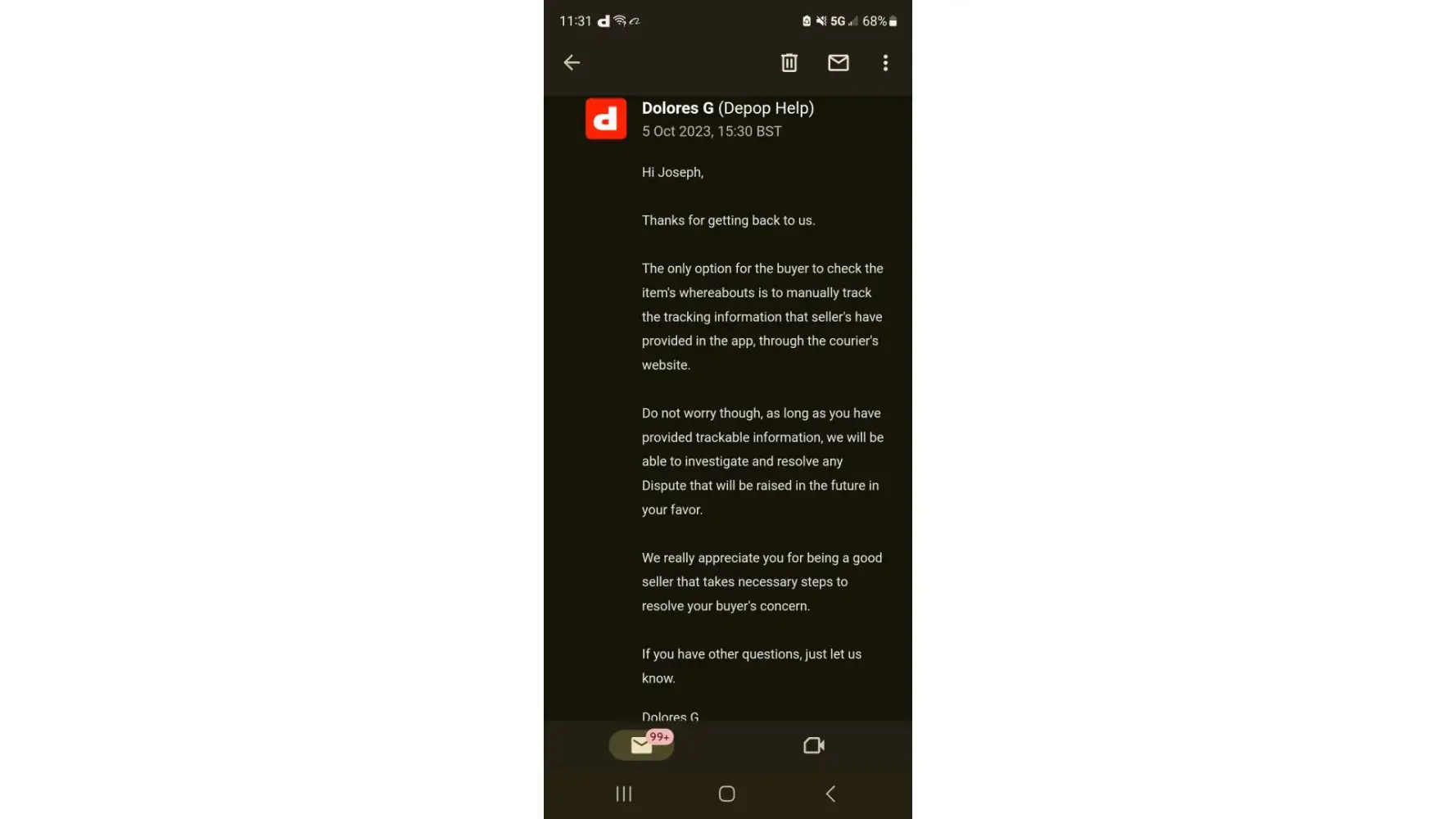Depop complaints: history and resolution overview