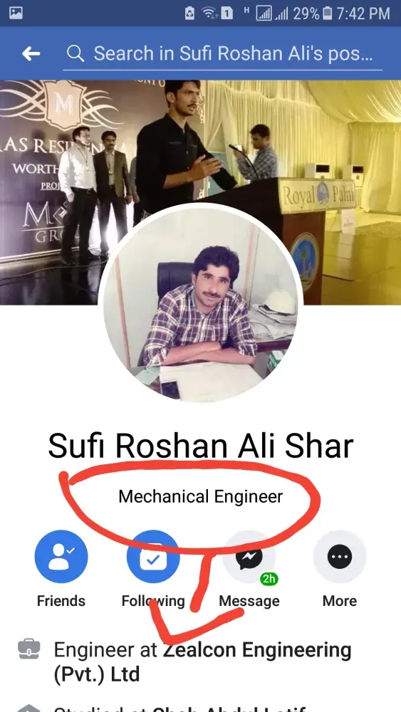 Requested you to your employer calling enger Roshan Ali shar he using Abused word on social media using your identy card and Insulting a restectable persons i will atached you the Proof