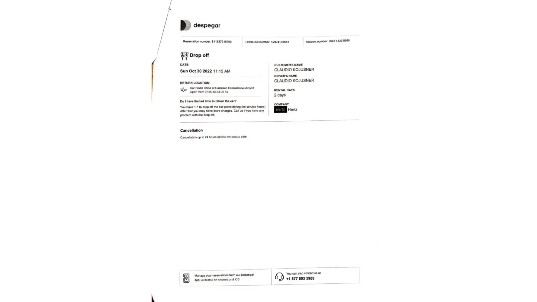I made a reservation on Despegar’s website and paid $180 for a car rental, from October 28th until October 30th. Despegar gave a reservation number: [protected], a lease-out number: K28741738A1 and a account number: [protected]