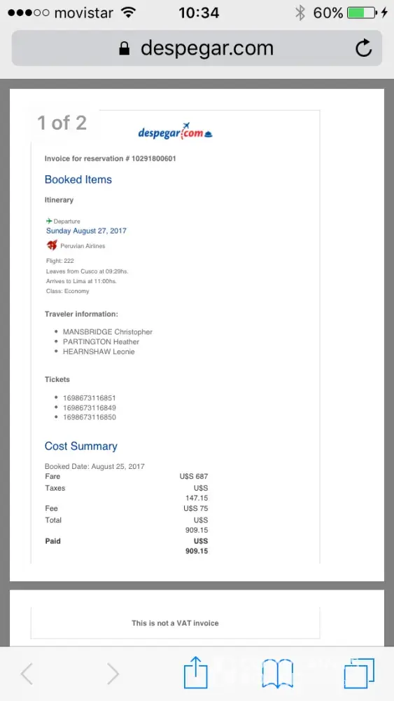 Despite this I didn't book another flight until the 18th of August as I was hopeful to hear from despegar, as we had been communicating via twitter regarding the booking.