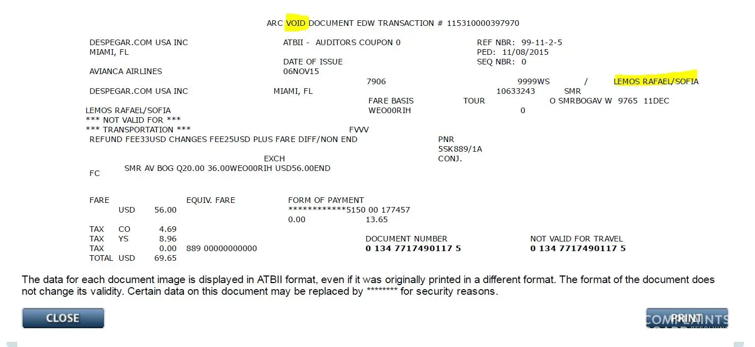 im attaching you the legal file where we show your ticket as VOID... ill suggest to chek this information with your bank