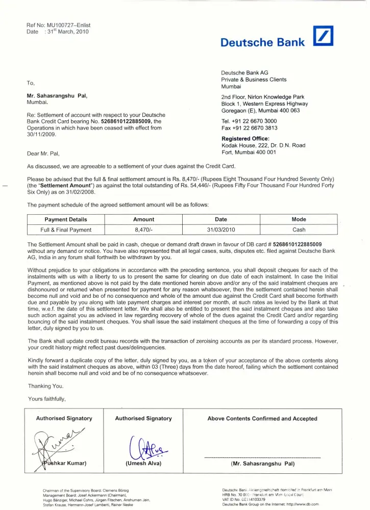 [protected] since 06/2017 being a loyal & honest customer I have been paying all my dues well on time. I always paid 100% outstanding dues throughout the tenure I used it & even not missed a month (Deutsche Bank can see all my 6 months records)