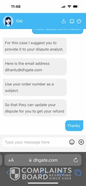 The DHgate associate Lucile who was handling the case ignored all my replies and projected as if I never replied to her and closed the dispute.