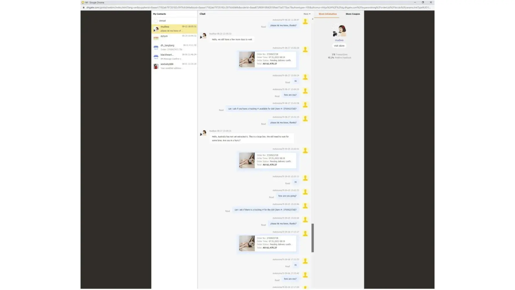 Dhgate ordered Order Number: [protected]