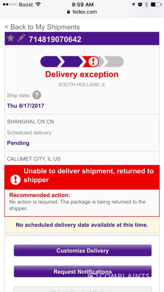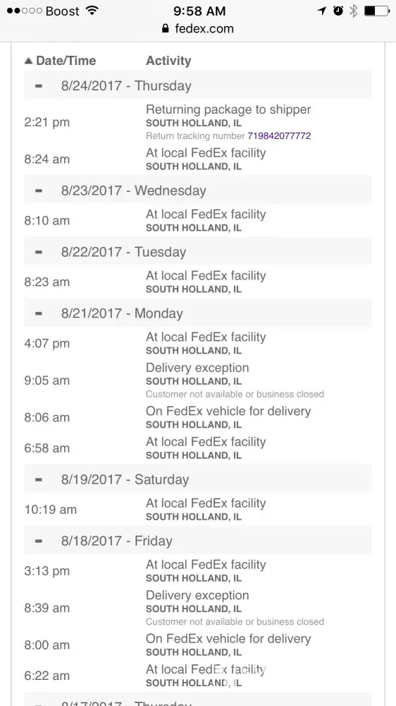 To ship it back to them but Fedex told me that they have the account n they have to call with there accounts information that they still haven't did yet this was the tracking number to the package originally was [protected] n the new was [protected]