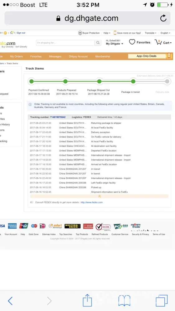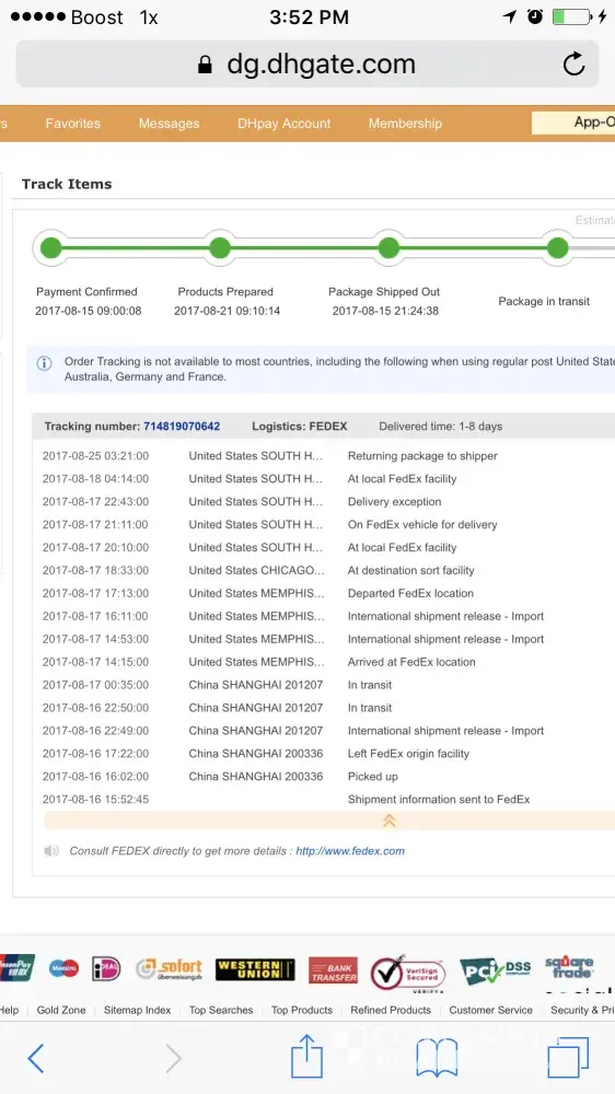 DHGATE said try different internet ISP,