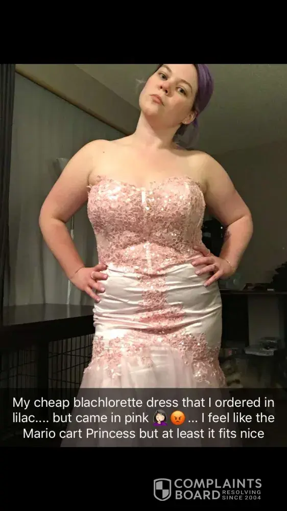 I ordered this dress to see if my bridesmaids will like it since the dress in picture looks really pretty but when I received it, the dress material is cheaply made and the color isn't the right dark red. I've message customer service multiple times they responded once but after I told them I wanted a refund they totally ignored me. I hope filing this complaint will resolve my issue. Attached please find the last messages I sent via chat online. Thanks!