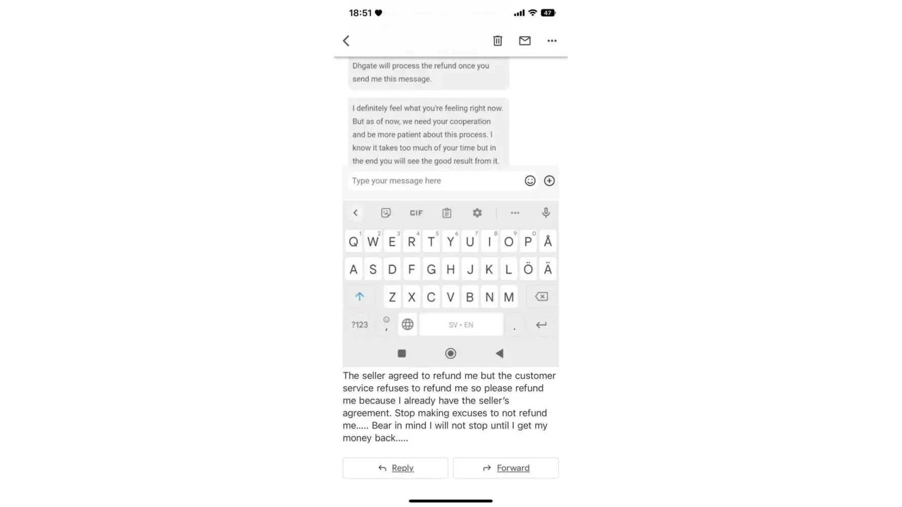 Also he said if I don’t do that I will have to pay for customs and he will not refund me, threatening me!