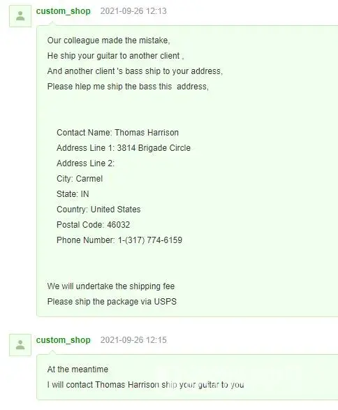 - 9/26/21: Seller contacted me and said they made a mistake and shipped me the wrong item and I was to ship the Bass to another person and that person would ship me my guitar.