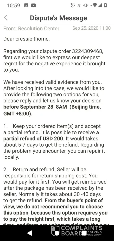 I have also contacted seller and he has offered 80USD refund but order was 142USD. The seller message is on your message centre and I also took screen shot and emailed to your customer support ID.