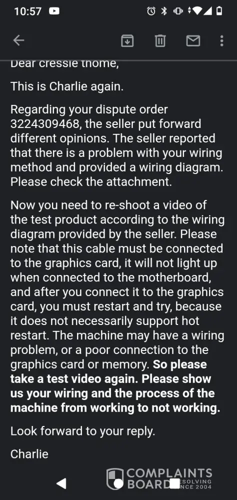 The complaint has been investigated and resolved to the customer's satisfaction.