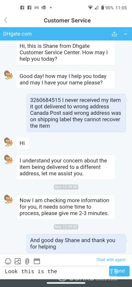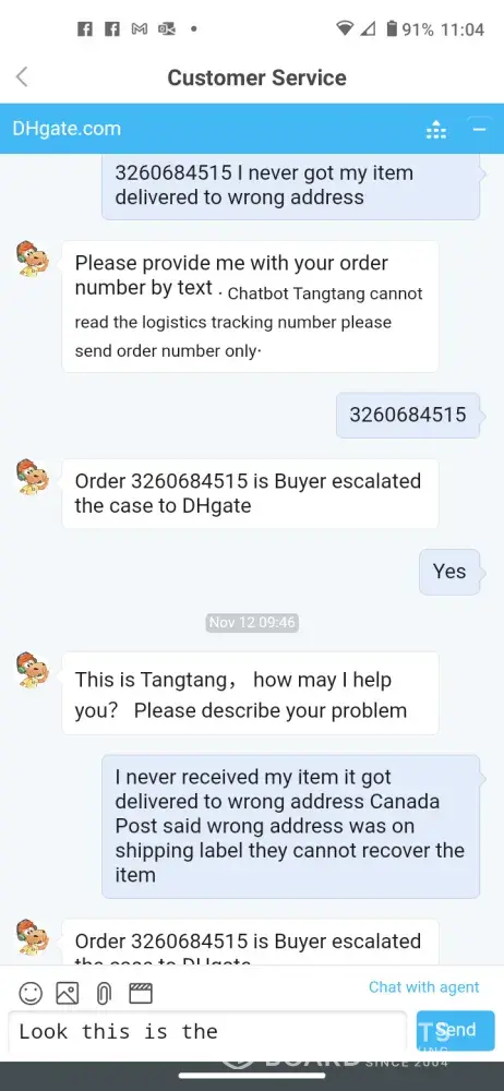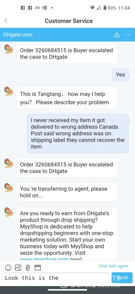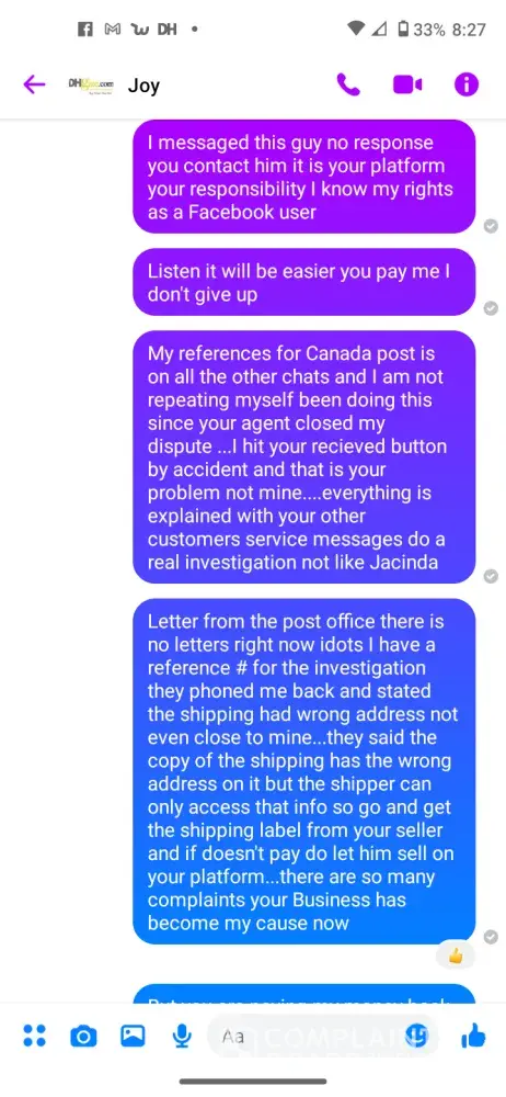 So pissed do not order from them ever and please share so no one you know gets ripped off... I think they might be doing this on purpose I found so many complaints on the same kind of issues as mine... Shame on dhgate we are in a pandemic definitely not a time to rip people off I been dealing with customer service since my delivery man didn't show up contacted canada post they did an investigation reference #138198954... They called me back an the agent said they sent some back to the wrong address to try to receive bit but no answer, the shipping label had wrong address not even my st... I want to contact customer service right away I hit received item by accident so I told the I pushed received but didn't mean too so I opened a dispute and explained all of this over and over and over again all my conversations are screenshots below... I am also tired of hearing to contact the seller how they closed the store as soon as I receive my tracking number...In my eyes your platform your responsibility to protect your customers... Don't ever buy from dhgate you regret it