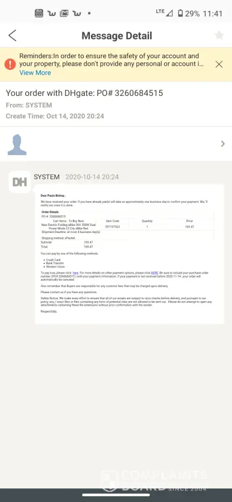 This is the email fro DHgate: Fri, Sep 25, 5:13 AM