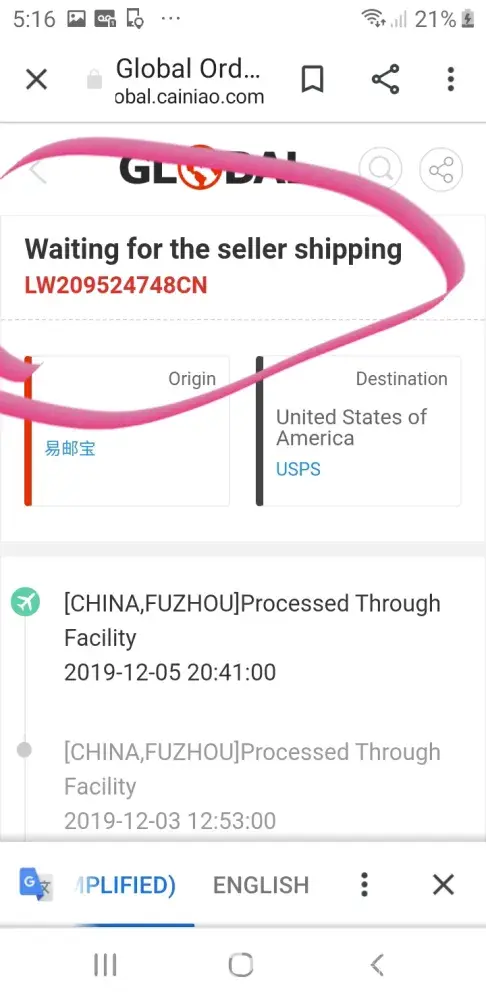 I ordered an maya down coat from the seller : gzproduct, I ordered on nov 16, 2019 it says my order is awaiting confirmation but the tracking number I have does not have any tracking information, when I wrote the seller today he says he will send my transfer number & has not done it, today is November 26 it has been 10 days since I ordered from this seller & my estimated delivery time is tomorrow, my order number is [protected] you can't text me on what's app [protected], or email me at [protected]@icloud.com