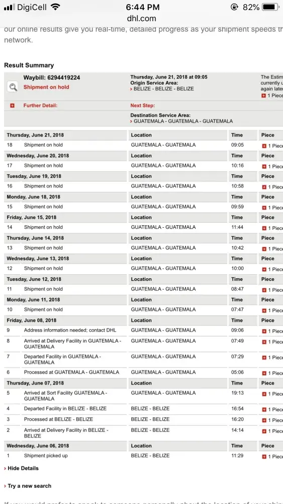 DHL Express delaying of a shipment