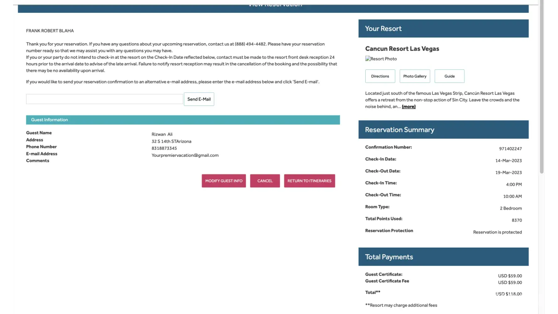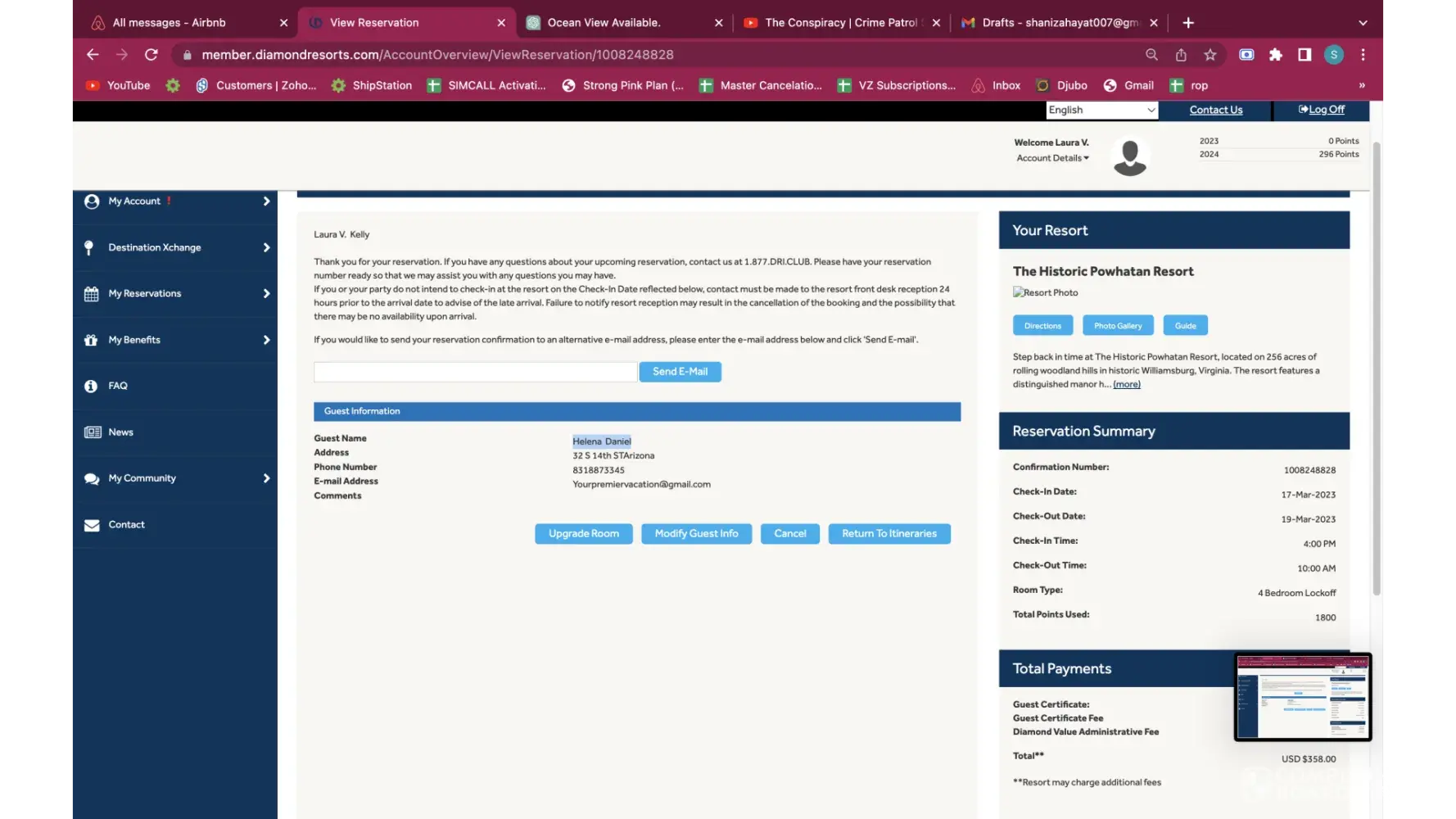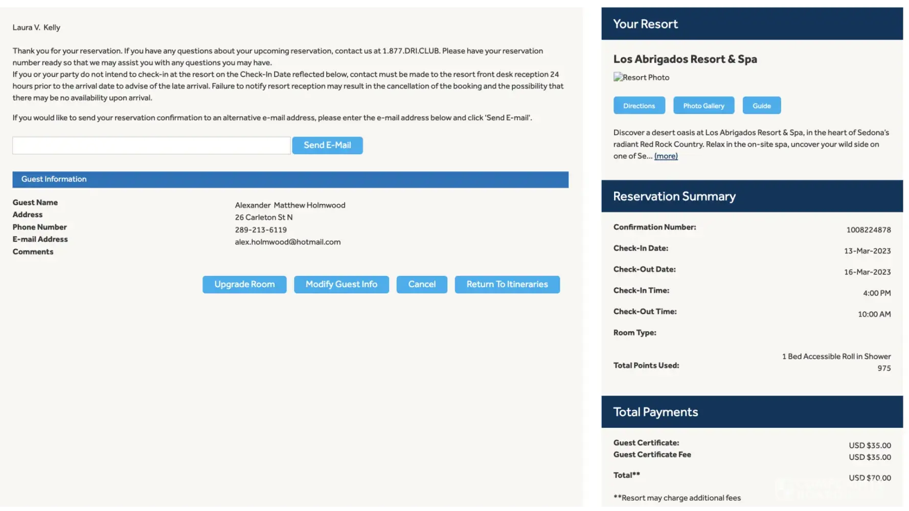 Desired outcome: I'd like my 11,500 points from Sedona Springs and my 2023 Diamond Points in my account now. I'd like an email, or text, to confirm it. I'll be reporting to BBB soon if it's not resolved.