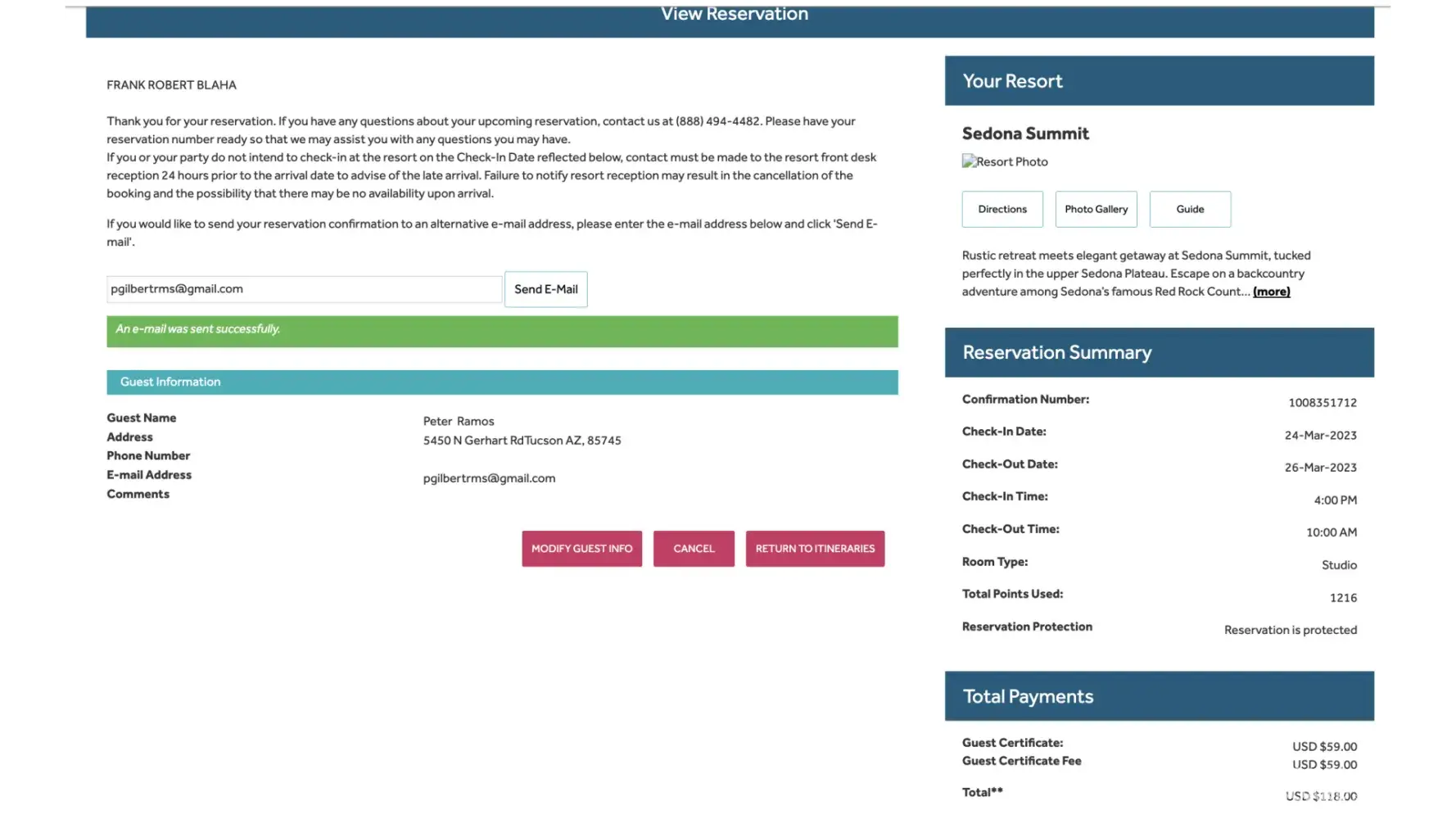 The first vacation I booked on this Time Share was Sedona Arizona on Nov.
