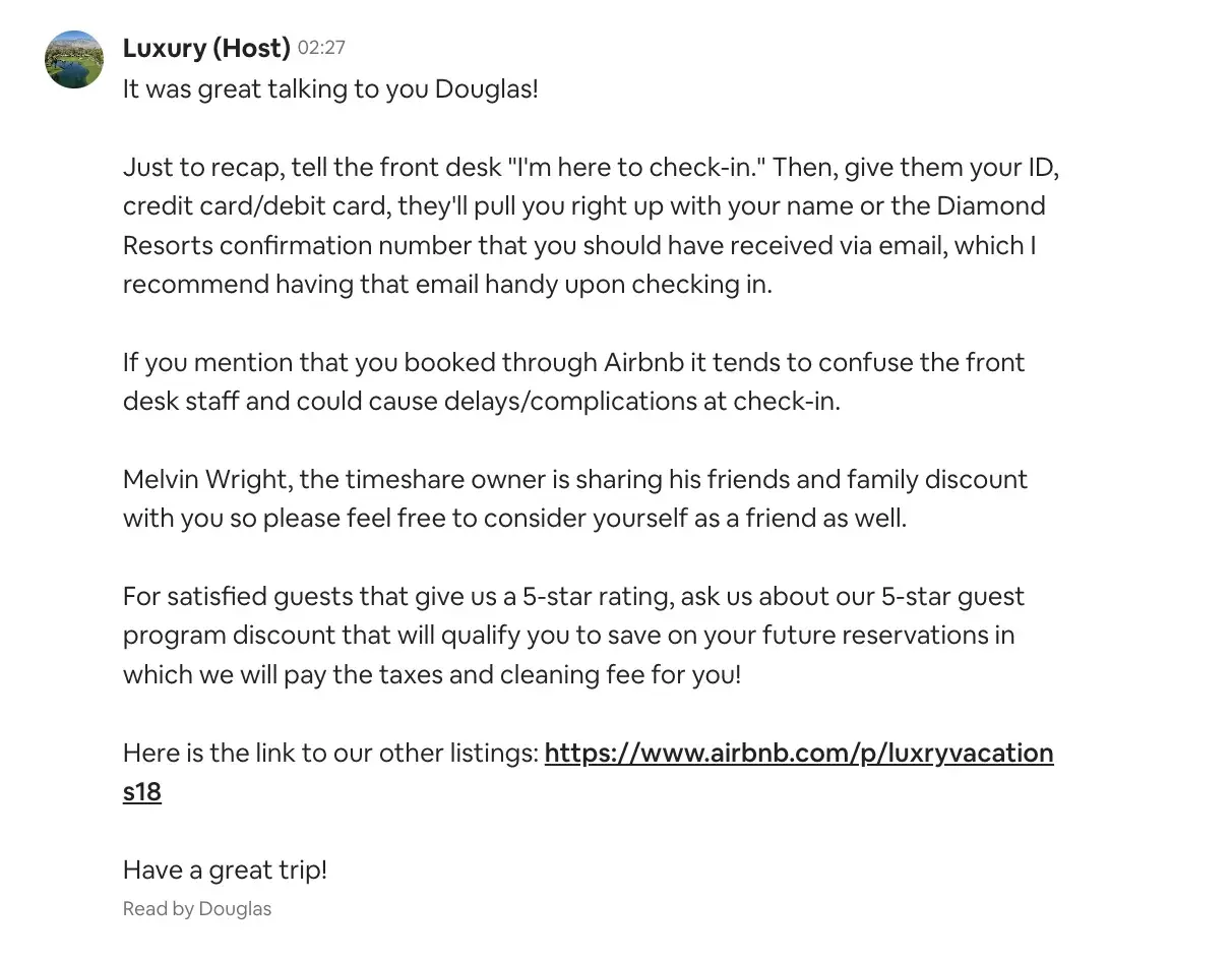 Read full reviewFraud on airbnb in with diamond resort