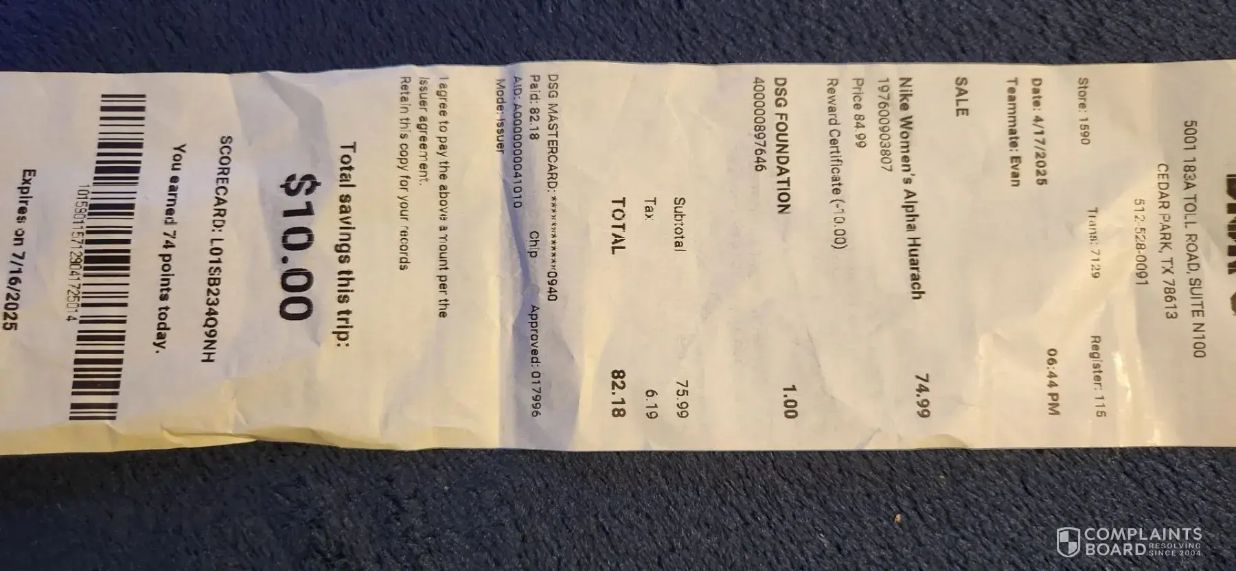 Read full complaint and 1 commentDick's San Tan Village, Gilbert AZ