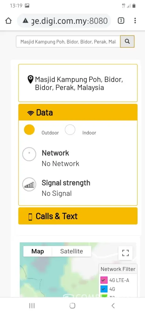 Outrageously enough, they said "there is no signal and no network at Kampong Poh, Bidor, Perak, Malaysia. "