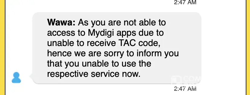 1. Coverage from Country Garden in Danga Bay Johor Bahru instead DIGI they use Singapore line. 2 Cannot receive OTP from Singapore banks..