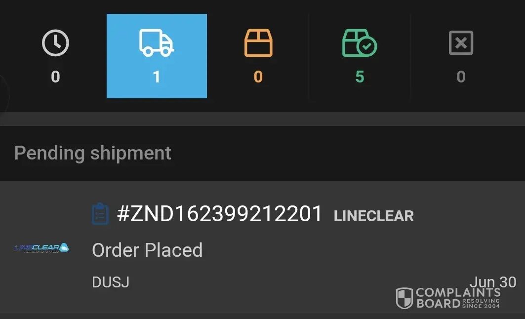 I manage to find the tracking ID using my order ID. Status under LineClear Express shows 'Order Placed' unchanged since 30 June 2021. My Order ID: [protected]. Tracking ID as attached below.