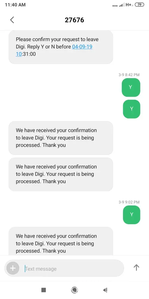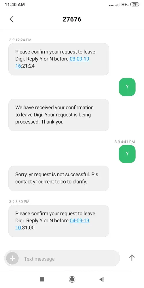 Dear digi, it's been 48hours and waiting for Digi to deactivate my line, I've replied through sms validation, and it stated Digi is processing, after 2 hours, Digi sent me a text saying that "
