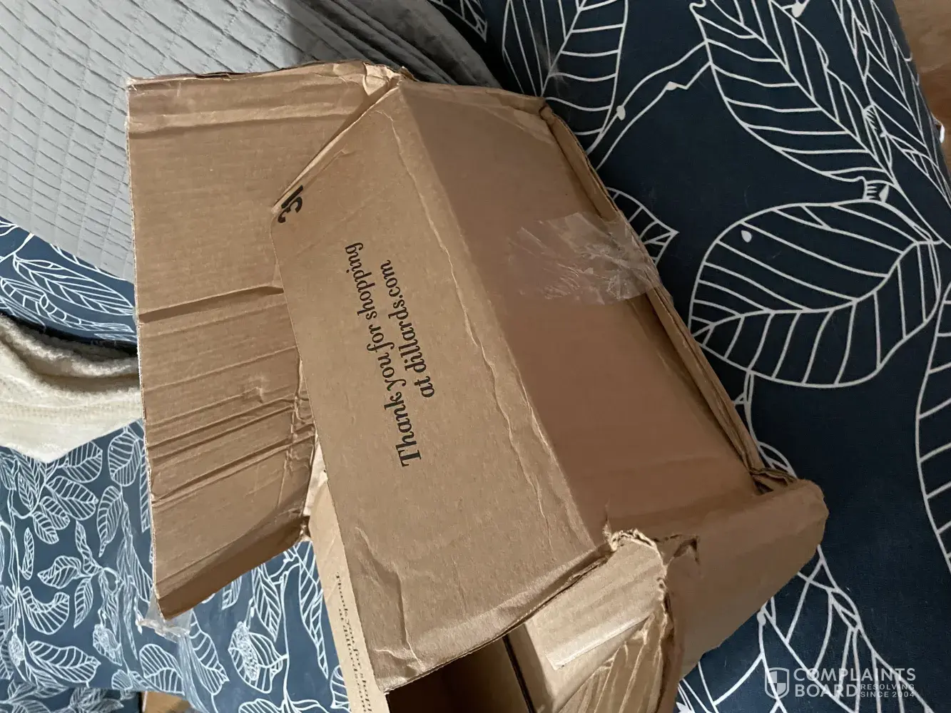 I just received a order from Dillards. The delivery box was bashed in and the sandles box was bashed in. Order #[protected].