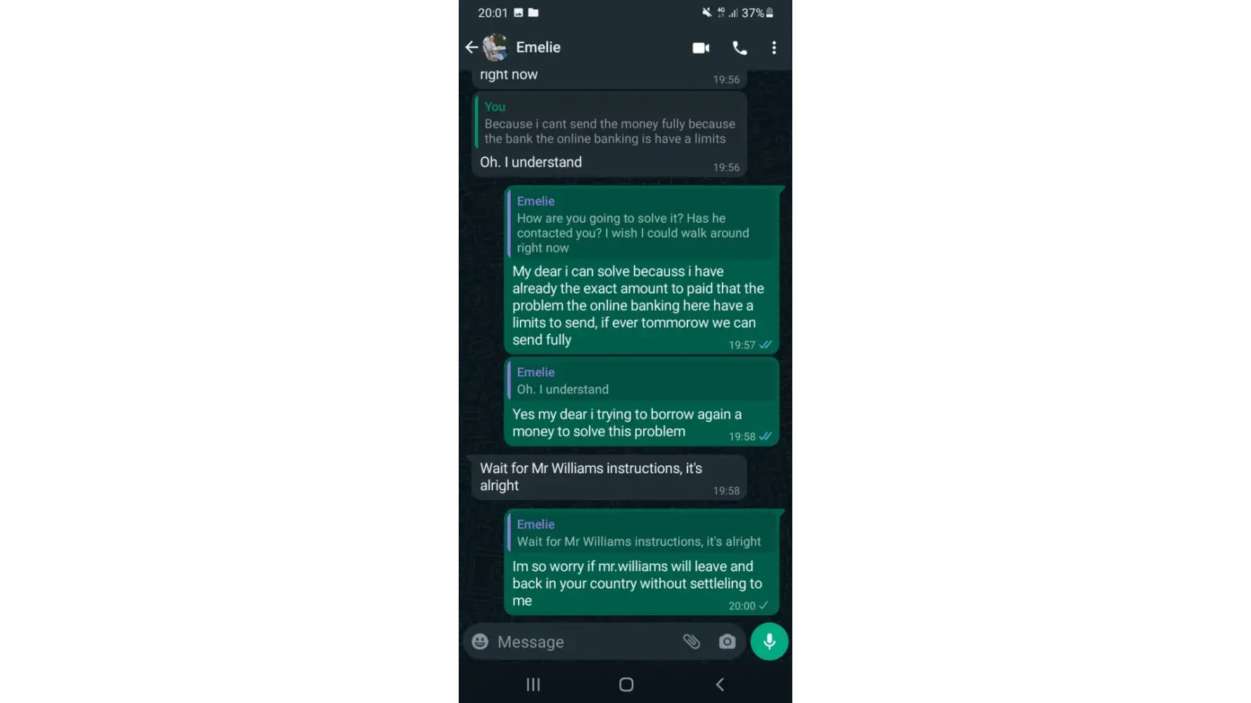 P.S.: His English was consistently broken as well. Eventhough he claims that he was born and raised in US and is permanently working in the UK. And he would type messages to profess his love in form of poetry. Totally not credible.