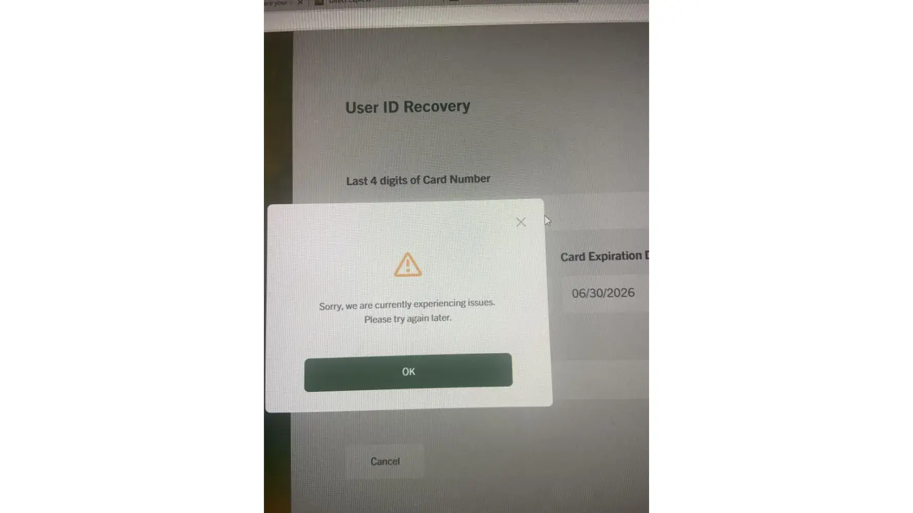 Desired outcome: Turn my Direct Express card back on.