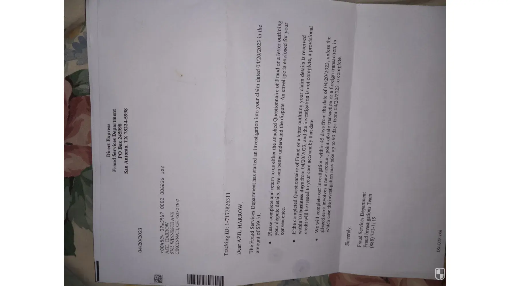 On April 21,2023 a dispute letter was sent to [protected]@usdirectexpress.com