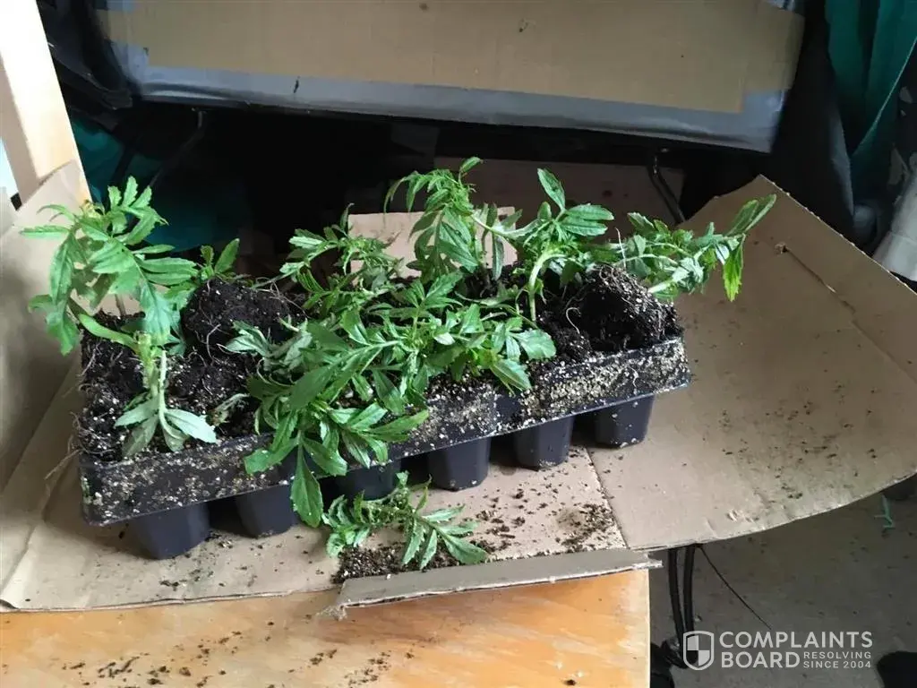 £60 of battered 'n bruised plants. 4-boxes of broken stems, compost scattered, plants all over the place!