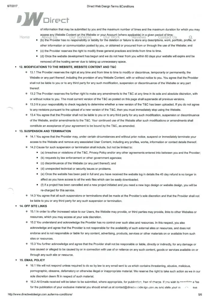 Directwebdesign.com.au regularly updates its policies to reflect changes in laws, regulations. These policies are easy to find and understand, and they are written in plain language that is accessible to all customers. This helps customers understand what they are agreeing to and what to expect from Direct Web Design.