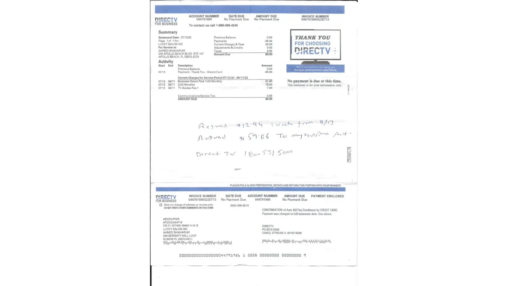 I NEVER saved card information with Direct TV and money was withdrawn that I needed for the holidays, that is ABSOLUTELY INSANE! How are you even able to get access to my account!? I called Direct TV customer services and was then directed to a supervisor who apologized over and over for my troubles. The supervisor informed me that he also saw Direct TV was charging me $147.16 for my equipment which I had already returned!? I told him that it was Christmas and I had been waiting to hear back about my balance and never was contacted. I asked if he could have the $186.02 put back in my account and then have someone notify me of my final bill. That would allow my old roommate and I time to figure out how to split the remaining balance. The supervisor told me, no problem and that the money would be put back in my account as soon as possible but it may take a couple days and that someone would be contacting me within the next two days about my final payment. AGAIN, I was NEVER contacted but instead, I received and email a day later stating that I was not getting my refund. I was LIVID!